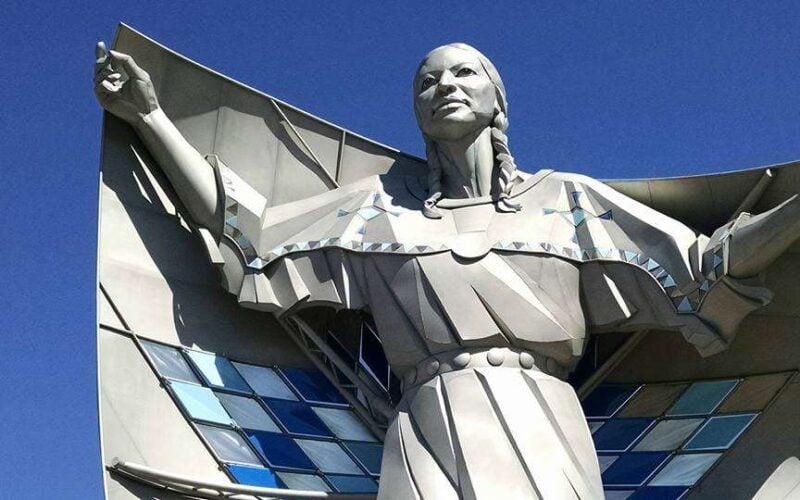 You guys have to check out this gorgeous new sculpture that recently went up in Chamberlin, South Dakota. The 50 foot tall sculpture depicts a young Native woman receiving a star quilt.