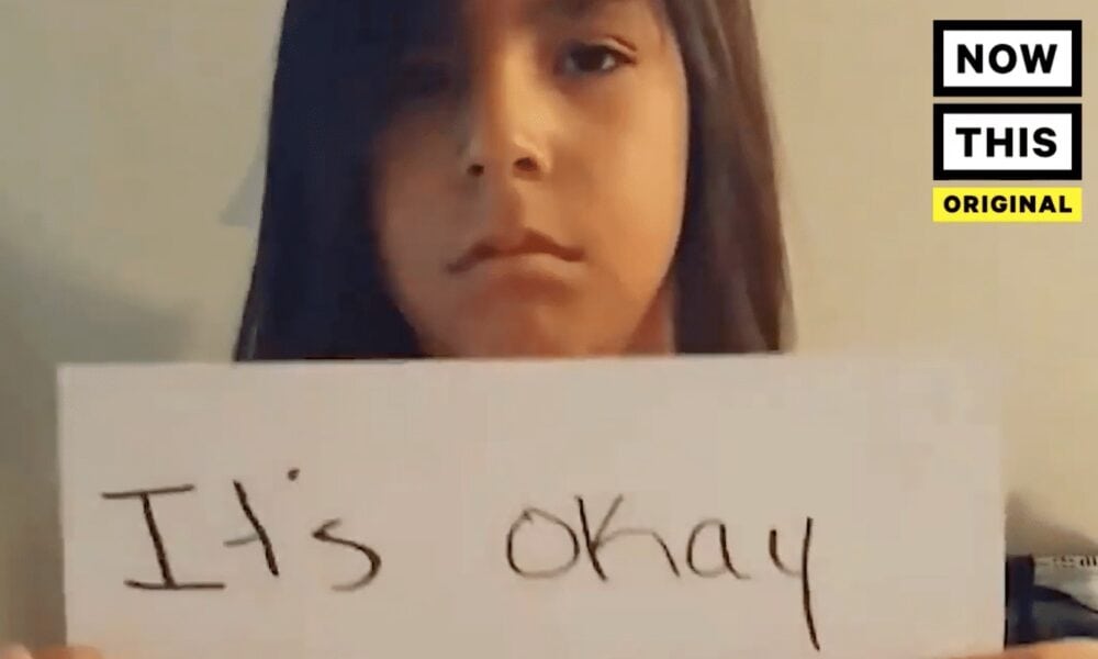 In the video, Mylon holds up white paper cards with words written on them for his bullies: “You do not define me. You did not beat me. I am not weak. It's OK to have long hair.”