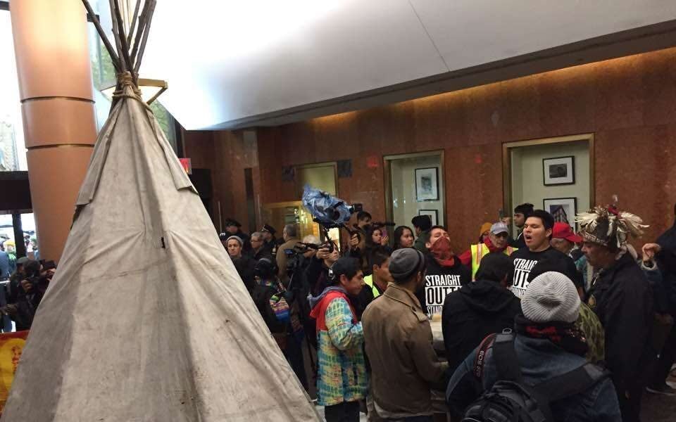 After being ignored through phone calls, emails and other outlets, several Lakota youth went to Hillary Clinton's campaign headquarters in Brooklyn to hand deliver a letter to her, asking her to take a stand against the Dakota Access Pipeline. While they were at the headquarters, a tipi was quickly erected in the lobby.