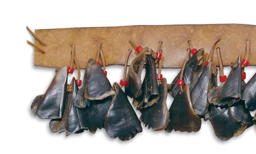 Deer toes have long been used as natural bells for dancers to keep rhythm with the drum. Some traditional men dancers are returning to this natural sound. Deer toes also can be used as decorative pendants. When attaching a group of them to a wood hand wand, they become a rattle.