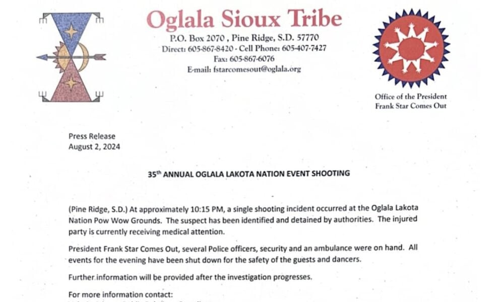 A fatal shooting occurred at the 2024 Oglala Lakota Nation Pow Wow on August 2, 2024.